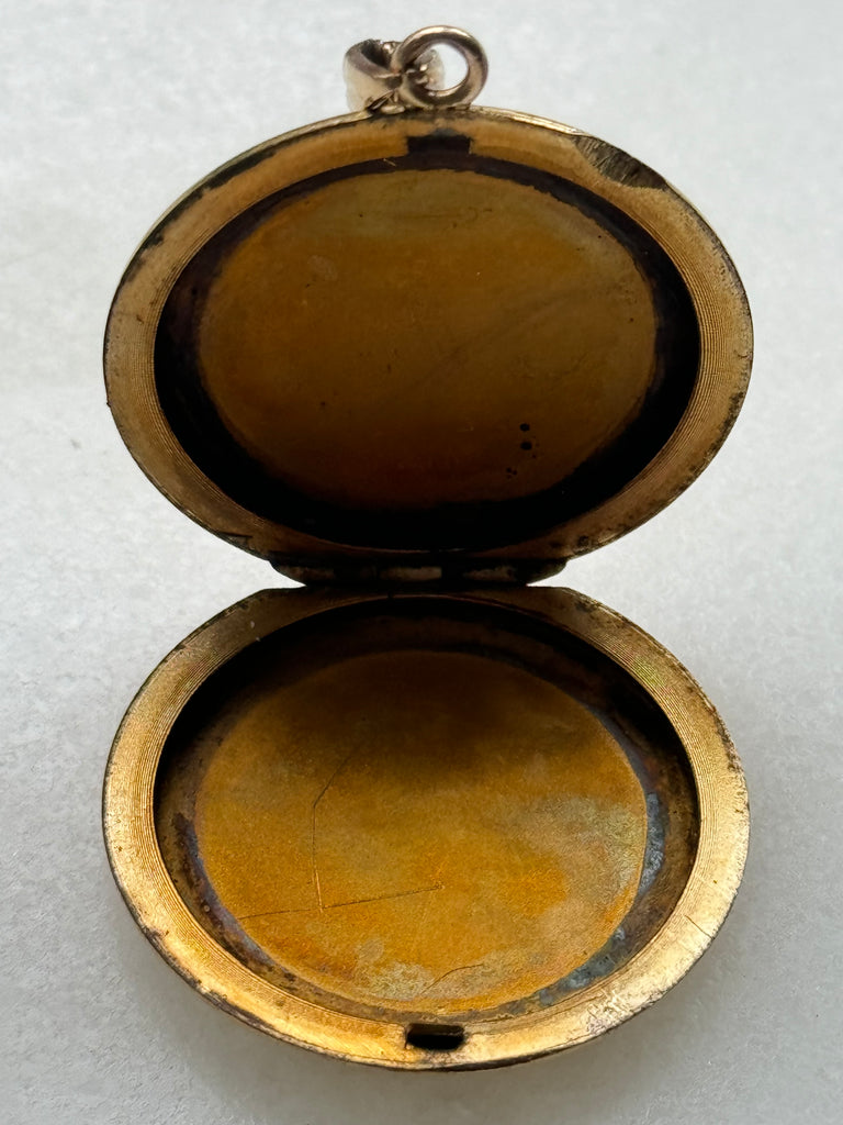 Beautiful vintage Gold Filled Locket PendantIt is gold filled. It measures 1“ x 1” and closes securely. It has some normal light surface scratches but is in overall very good antique condition.