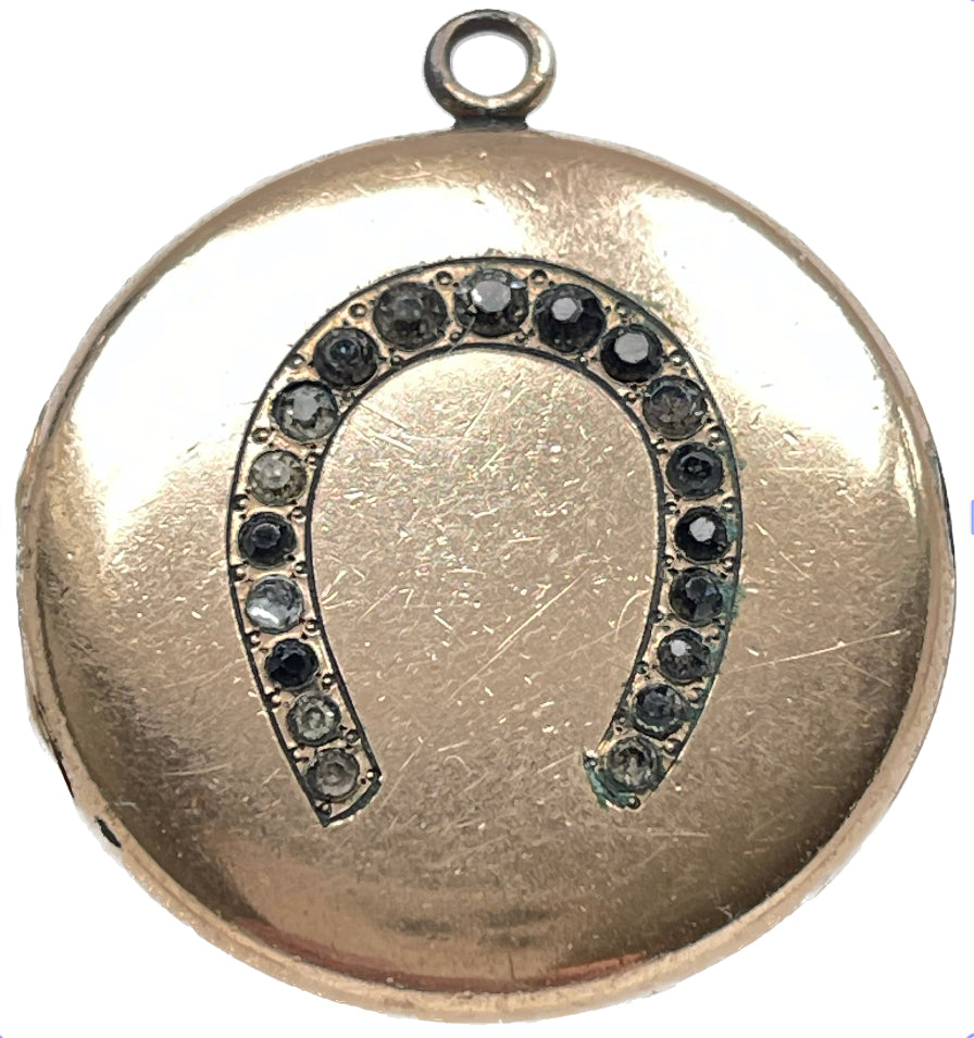 Beautiful vintage Gold Filled Horseshoe Locket Pendant with Rhinestone Chips
