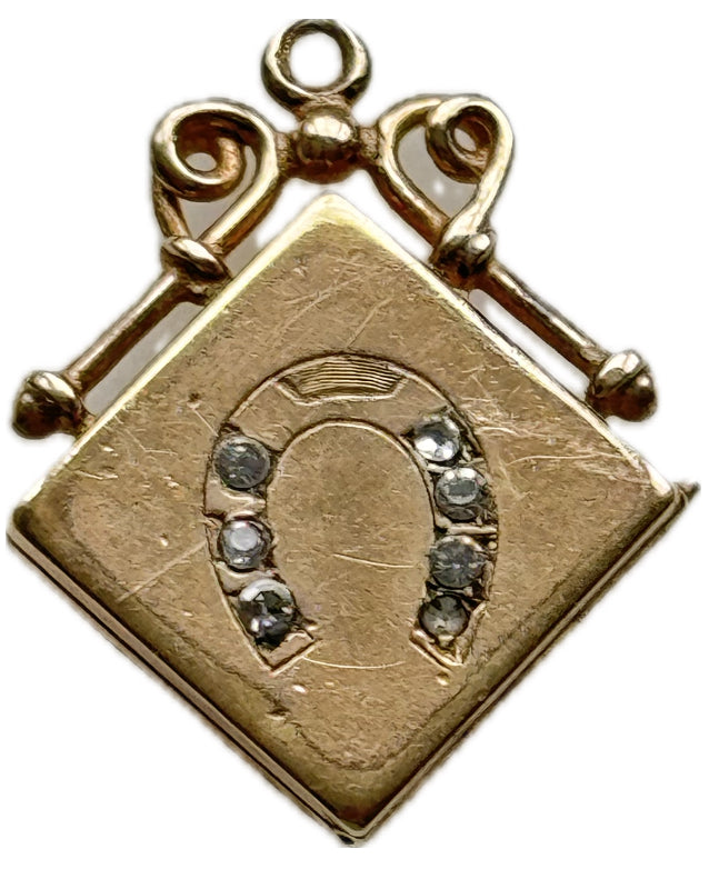 Beautiful vintage Gold Filled Horseshoe Locket Pendant with Rhinestone Chips