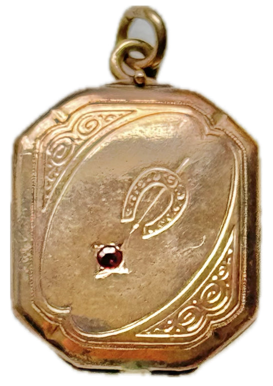 Square Horseshoe Locket with Ruby